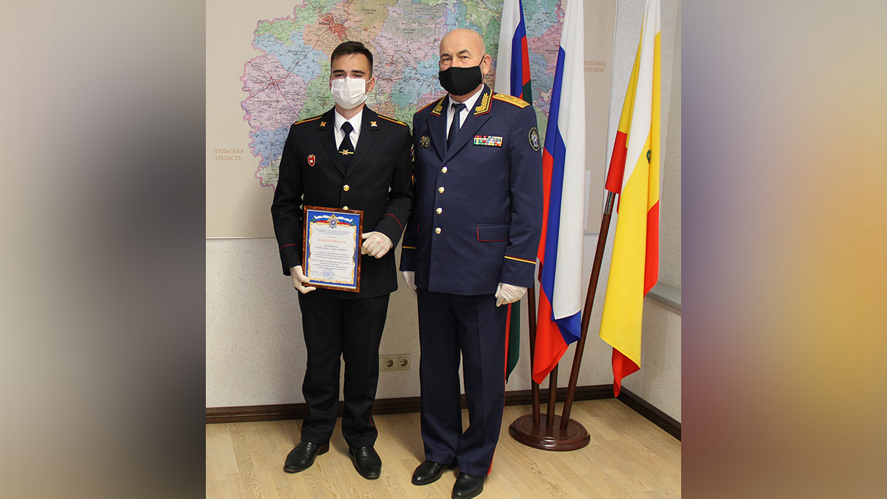 Курсант РФМУ МВД России Александр Троицкий, задержавший подозреваемого в убийстве, награждён руководителем СУ СК России по Рязанской области