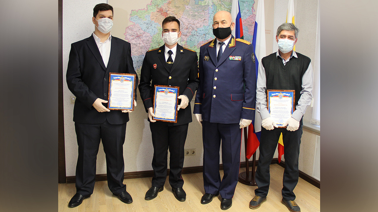 Руководитель следственного управления генерал-лейтенант юстиции Владимир Никешкин объявил Александру Троицому, Дмитрию Чикунову и Асланбегу Гюльмагомедову благодарность за активную гражданскую позицию, задержание опасного злоумышленника и содействие следственным органам. Вручая благодарности, руководитель управления отметил, что их поступок является примером проявления лучших человеческих качеств - смелости, отзывчивости, неравнодушия и готовности прийти на помощь.