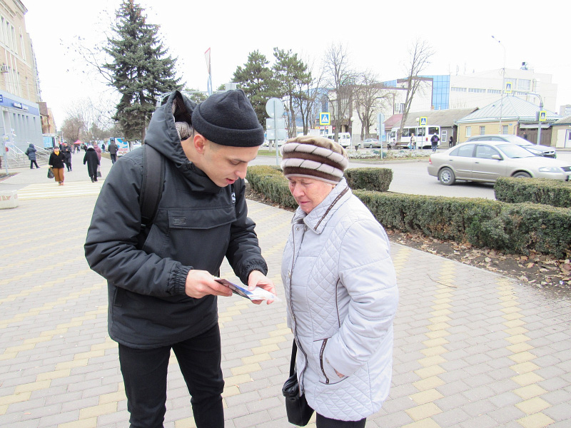 А в Георгиевске на центральной площади сотрудники полиции совместно с волонтерами Центра молодежных проектов провели информационно-просветительскую акцию «Не дай себя обмануть!».