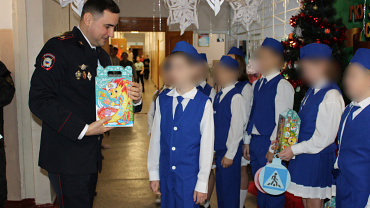 Стражи правопорядка подарили ЮИДовцам из сёл Спасского, Константиновка, Вознесенка и Семеновка Мелитопольского района подарочные наборы со сладостями.