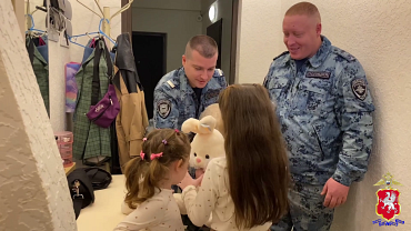 После выздоровления девочки стражи правопорядка навестили семью. Они поздравили малышку и её сестру с наступающим Новым годом и вручили им подарки – мягкие игрушки и торт.