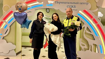 В день выписки капитан полиции Виталий Подшибякин и старший лейтенант полиции Алексей Четвериков приехали поздравить молодую маму.