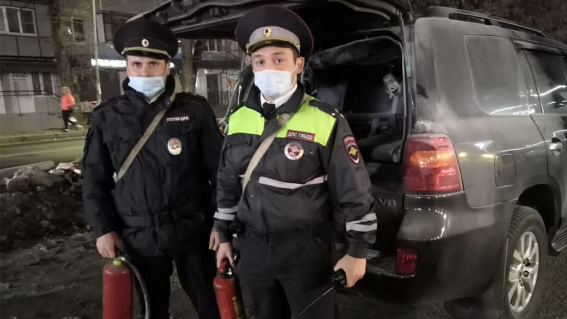Оперативно предприняв действия по их эвакуации, один из стражей правопорядка принялся тушить транспортное средство, второй вызвал пожарный расчёт. До приезда спасателей с помощью огнетушителей сотрудники полиции локализовали возгорание на его начальной стадии и не допустили распространения огня.