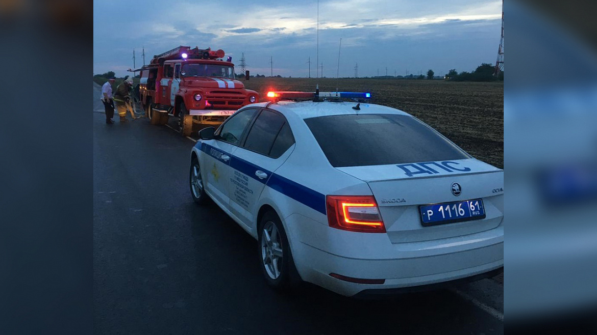 Полицейские Ростовской области потушили загоревшийся на трассе автомобиль