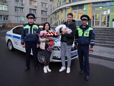 Полицейские навестили молодую маму при выписке из медучреждения и поздравили семейную пару с пополнением, а в ответ услышали слова благодарности за оказанную помощь.