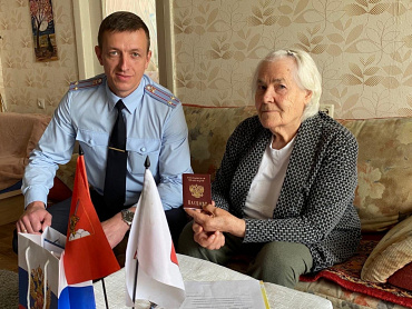 Пожилая женщина поблагодарила сотрудников полиции за вручение важного документа и пожелала успехов на службе.
