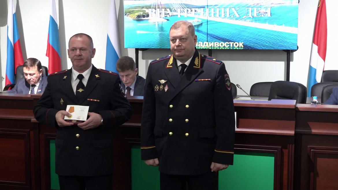 Начальник Управления МВД России по Приморскому краю генерал-майор полиции Александр Табакаев вручил медаль МВД России «За смелость во имя спасения» старшему оперуполномоченному уголовного розыска отдела МВД России по Ханкайскому округу майору полиции Владимиру Поварчуку. Глава УМВД Приморья поблагодарил оперуполномоченного за грамотные и решительные действия в экстремальной обстановке.