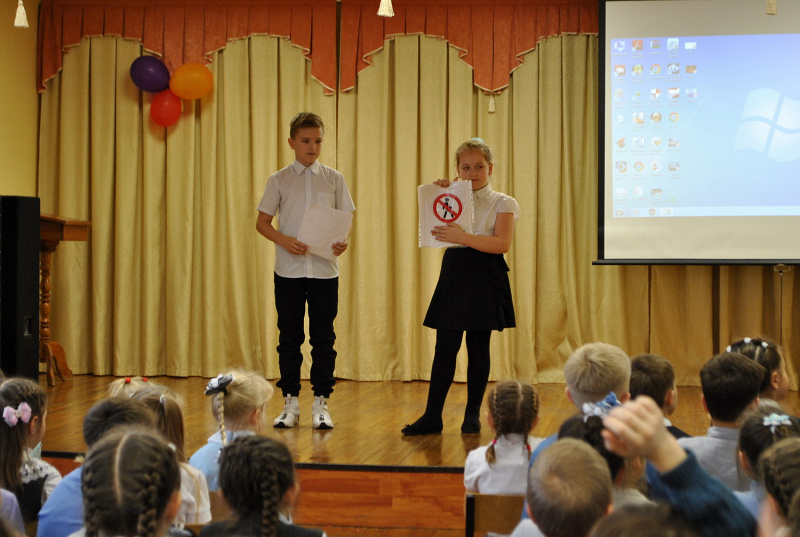 В ходе мероприятия ребята из отряда юных инспекторов дорожного движения «Дружба» напомнили первоклашкам Правила дорожного движения, в игровой форме вспомнили значения дорожных знаков, провели блиц-опрос. Инспектор по пропаганде безопасности дорожного движения Наталья Фомина рассказала учащимся о правилах поведения на дороге, переходе проезжей части и напомнила ребятам о том, что проезжая часть не место для игр.
