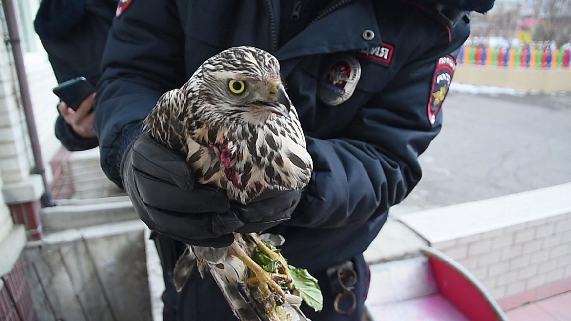 В Забайкальском крае во время несения службы сотрудникам батальона патрульно-постовой службы УМВД России по городу Чите поступило сообщение о том, что в окно квартиры ударилась большая птица и упала в цоколь многоквартирного дома.