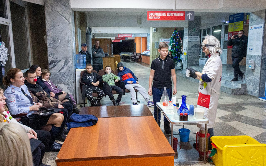 Кроме того, для ребят было организовано развлекательное шоу. В игровой форме они получили дополнительные знания в сфере безопасности. Детям рассказали, почему высоковольтные провода над железной дорогой никогда не замерзают, почему на крыше вагона может ударить током, даже если не прикасаться к проводам, почему проходящий мимо состав может затянуть под колёса.