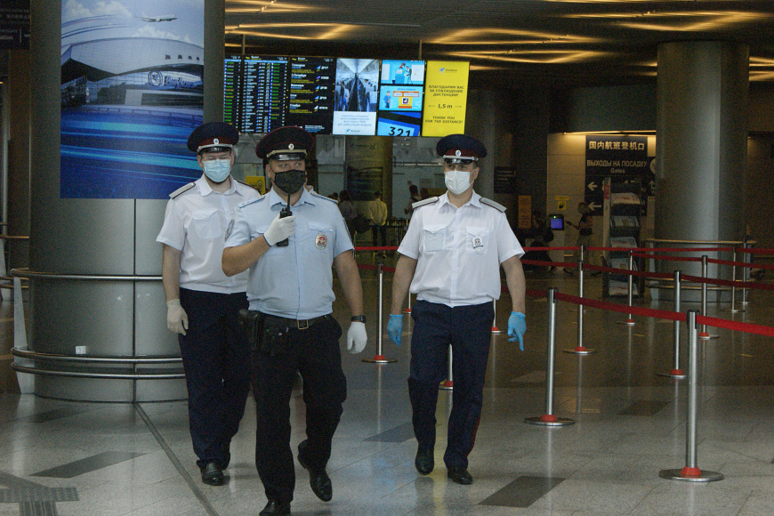 Совместное построение нарядов транспортной полиции и казаков состоялось в терминале D аэропорта Внуково. После проведения инструктажа и проверки обмундирования совместные наряды вышли на маршруты патрулирования.