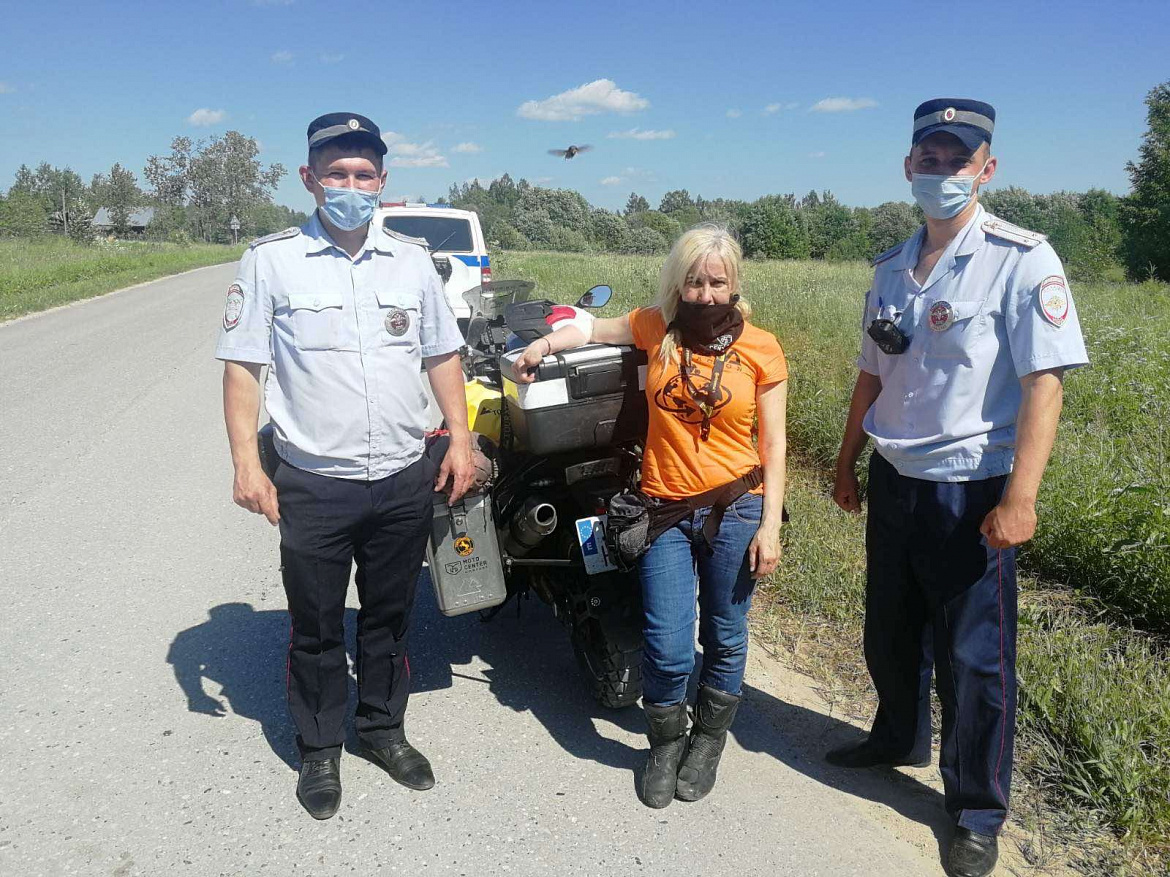 Полицейские подъехали к мотоледи, чтобы узнать, что случилось. Как выяснилось, женщина не владеет русским языком. Прибегнув к общеизвестным английским словам и переводчику смартфона, сотрудники ГИБДД выяснили, что путешественница является гражданкой Испании и совершает мотопробег из своей страны до Владивостока. Выбрав неправильное направление, женщина съехала на второстепенную дорогу, оказавшуюся не пригодной для её транспортного средства.