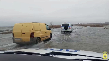 Автоинспекторы информируют граждан о возможных проблемах и необходимости соблюдения осторожности и скоростного режима во время движения по затопленной морской водой дороге.