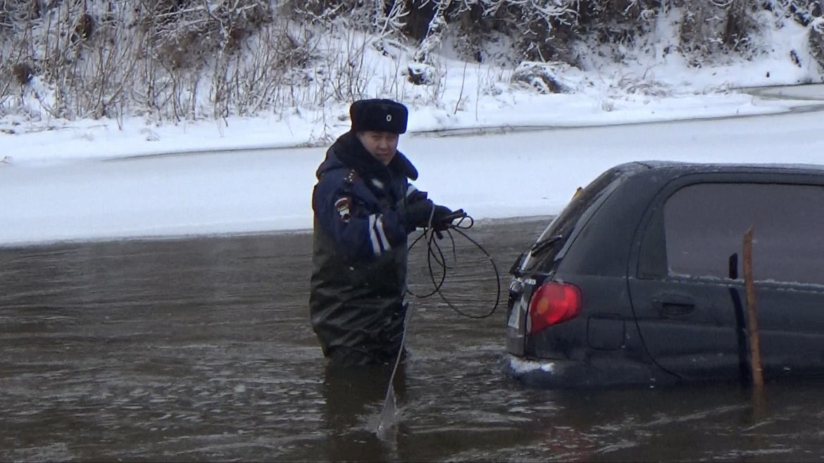 Илья Усов, надев специальный защитный костюм, вброд отправился к застрявшей иномарке и зацепил её тросом. Далее с помощью отечественного внедорожника они вытащили транспортное средство на берег, после чего отбуксировали в автосервис.