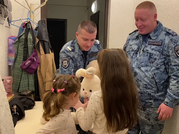 После выздоровления девочки стражи правопорядка навестили семью. Они поздравили малышку и её сестру с наступающим Новым годом и вручили им подарки – мягкие игрушки и торт.