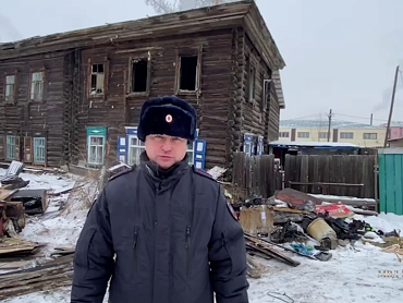 Маленького мальчика один из стражей правопорядка закутал в куртку и вынес на улицу, а незрячему мужчине сотрудники полиции помогли одеться и вывели из задымленного здания.