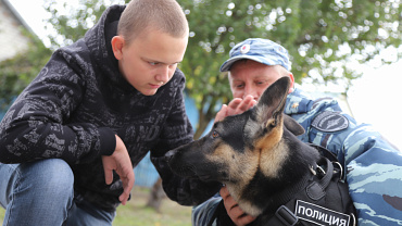 Полицейские вместе с активистами ОНФ привезли ему питомца – воспитанницу Центра кинологической службы УМВД по кличке Медея. Овчарка уже знает много команд и с удовольствием демонстрирует свои навыки.