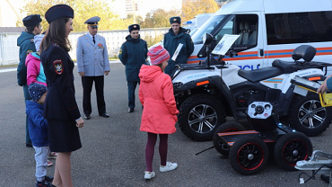 Ребята и их родители познакомились с пожарной техникой и средствами пожаротушения, прокатились на служебном квадроцикле и приняли участие в тушении учебного пожара.
