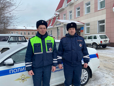 Увидев, что из-под капота перевёрнутой иномарки идёт дым, стражи правопорядка пересадили граждан в патрульный автомобиль и с помощью огнетушителя ликвидировали возгорание.