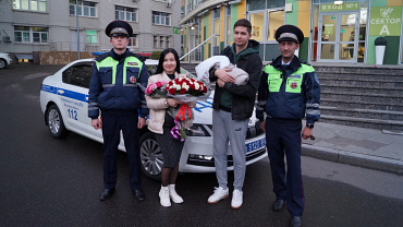 Полицейские навестили молодую маму при выписке из медучреждения и поздравили семейную пару с пополнением, а в ответ услышали слова благодарности за оказанную помощь.