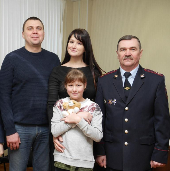 На вопрос, понравилось ли быть кинологом, взволнованная всем происходящим девочка смогла произнести только да. Полковник полиции Владимир Ганьков вручил юной гостье символический подарок – маленького плюшевого щенка.