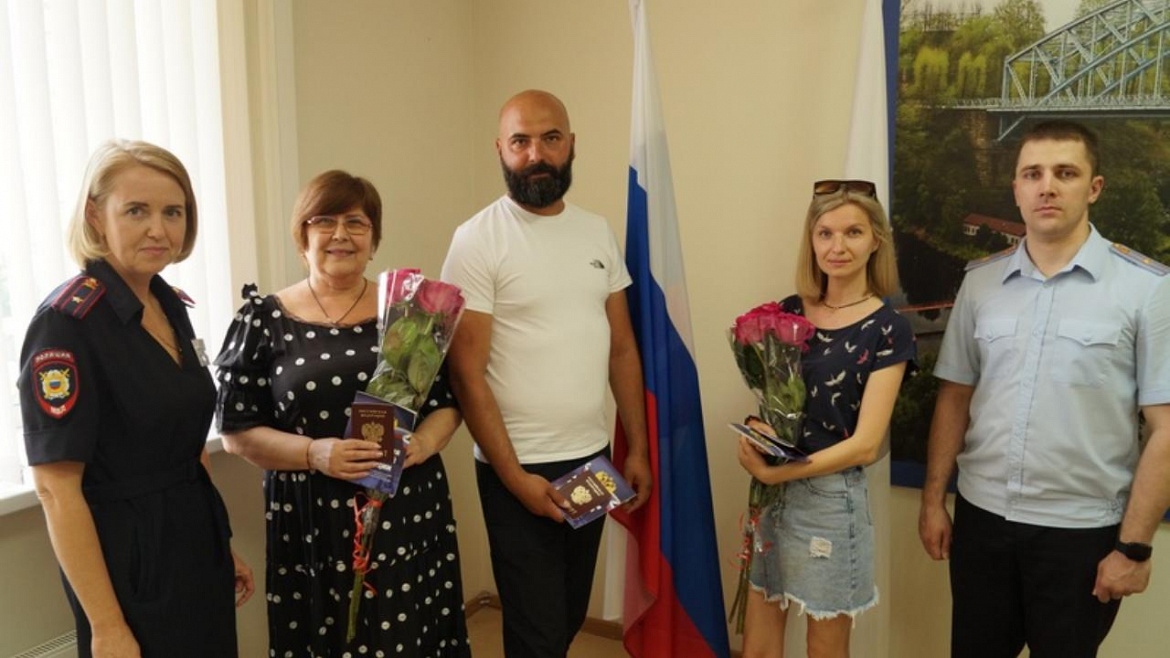 В межмуниципальном отделе МВД России «Боровичский» состоялась церемония вручения российских паспортов трём гражданам, прибывшим в Россию из города Мариуполя.