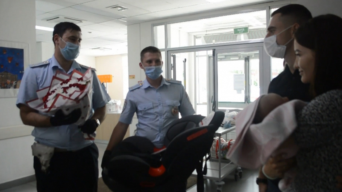 3 июля на свет появился здоровый мальчик. Правоохранители поздравили новоиспечённых родителей в день выписки и подарили им автокресло.