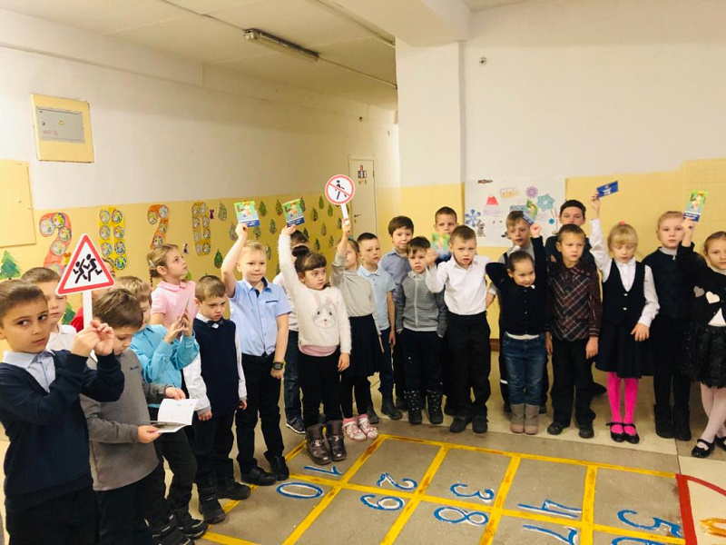 Вместе с сотрудниками ГИБДД первоклассники произнесли клятву пешехода, в которой пообещали переходить дорогу только в установленных местах и на разрешенный сигнал светофора, быть предельно внимательными при пересечении проезжей части. Дети заверили полицейских, что никогда не станут бегать и играть вблизи дороги.