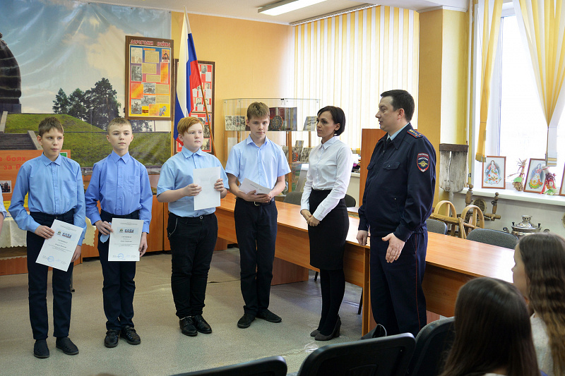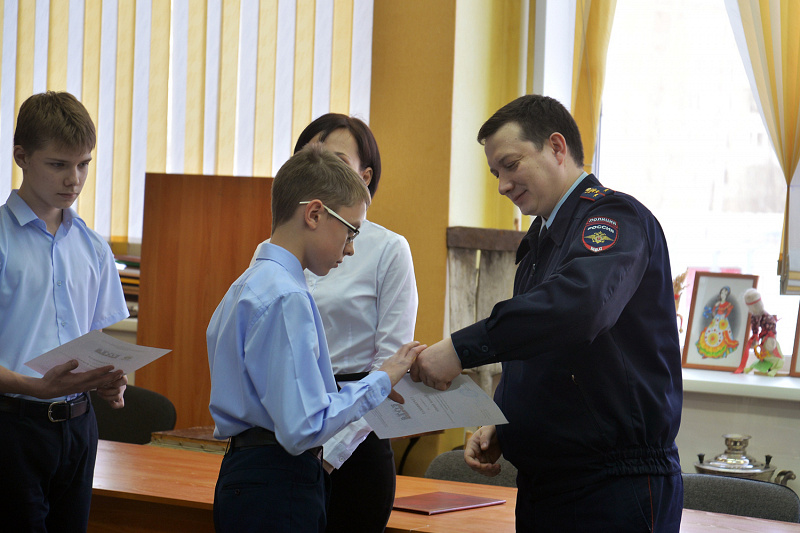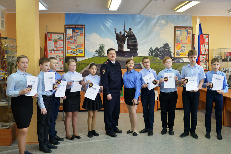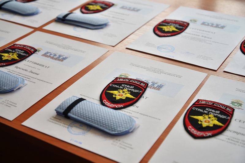 Заместитель директора по правовому воспитанию и организационной работе школы, обращаясь к присутствующим, подчеркнула важность данного направления работы с детьми, ведь проект «Юный страж порядка» способствует развитию дисциплинированности и ответственности, после чего начальник ОДН УМВД России по ЗАТО Северск Сергей Осипенко вручил каждому участнику отряда комплекты и сертификаты Юных стражей порядка, поздравил и пожелал хорошо учиться и быть примером для своих сверстников.