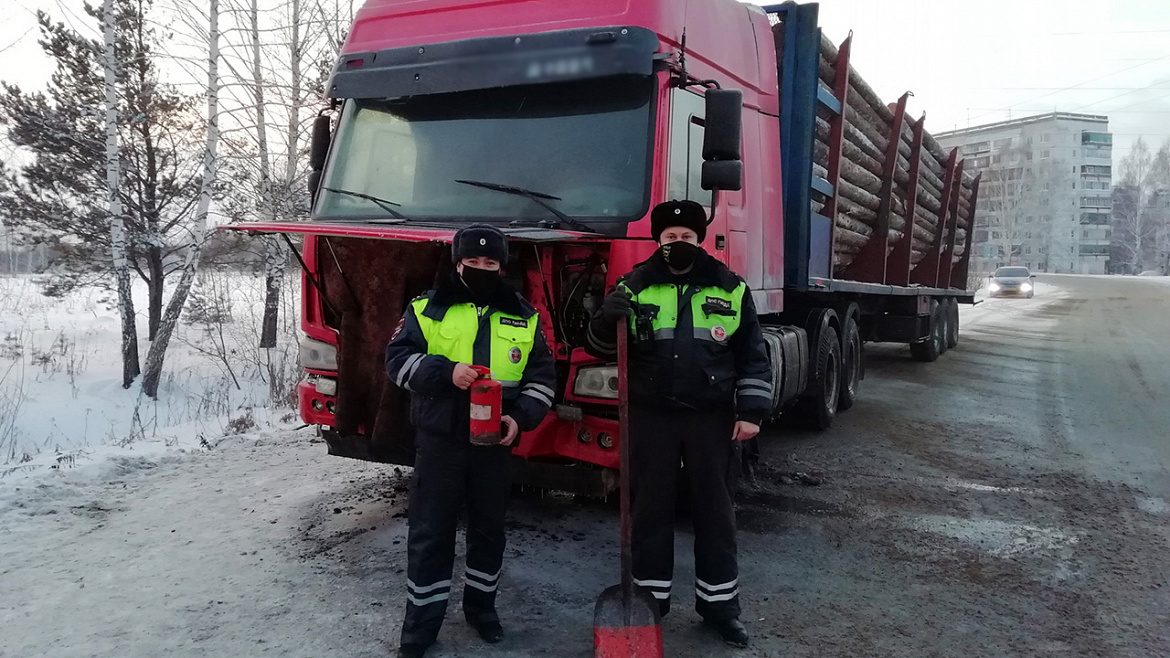Сотрудники отдельного батальона ДПС ГИБДД УМВД по Томской области лейтенант полиции Станислав Надеев и старший лейтенант полиции Евгений Максимов, двигаясь по автодороге посёлок Светлый – город Томск, увидели на обочине грузовик, перевозящий лесоматериалы, у которого горел воздухозаборник, расположенный за кабиной водителя.