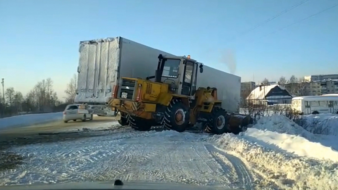 Станислав Надеев и Роман Шалаев обеспечили безопасность дорожного движения на данном участке дороги и обратились за помощью к мужчине, у которого имелся бульдозер. Неравнодушный гражданин отозвался на клич о помощи и по прибытии на место с помощью тягача вызволил грузовик из снежного плена.