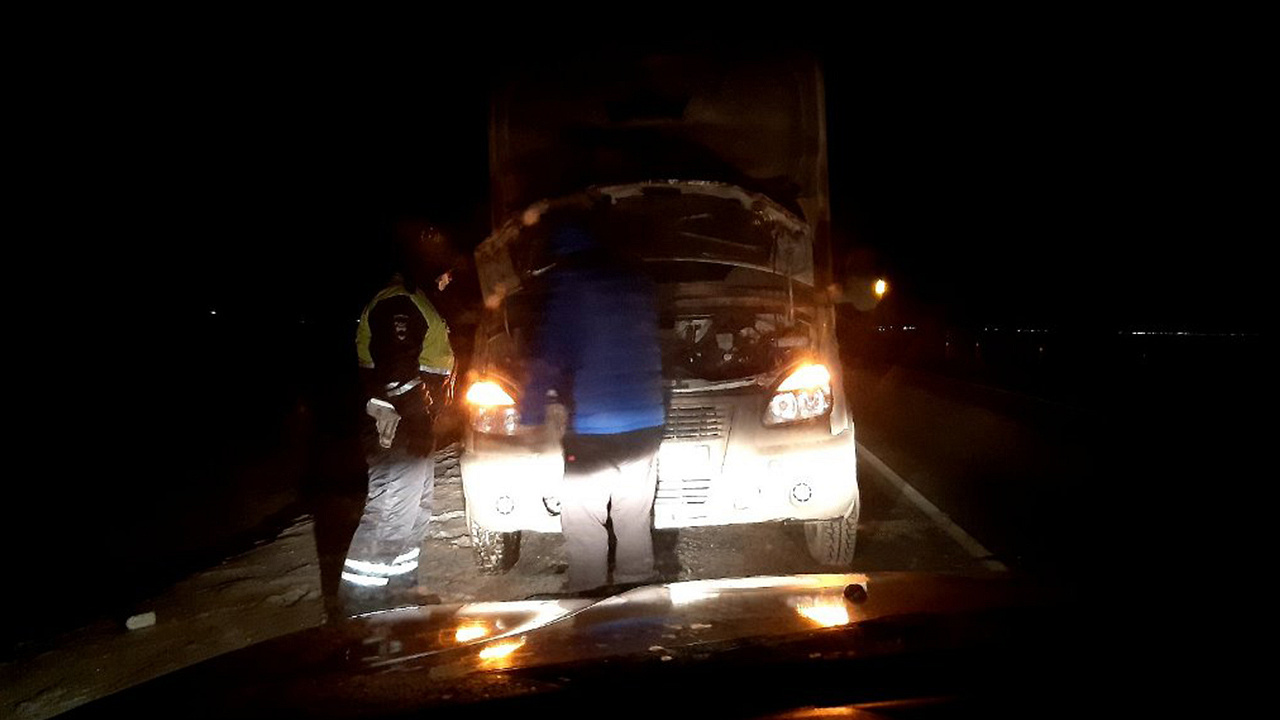 Водитель поблагодарил сотрудников Госавтоинспекции за оказанную ему помощь на трассе в устранении поломки и продолжил движение по намеченному маршруту.