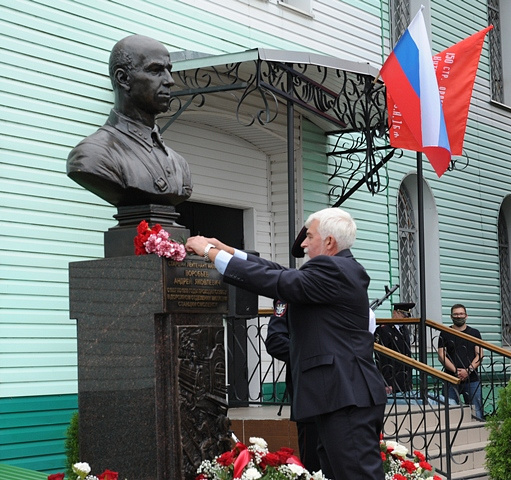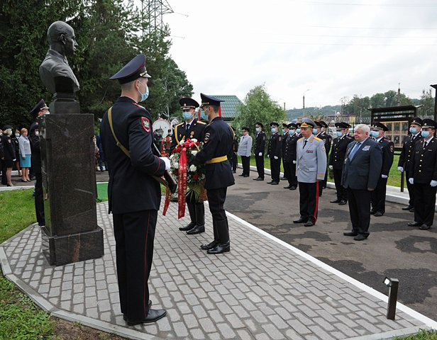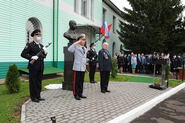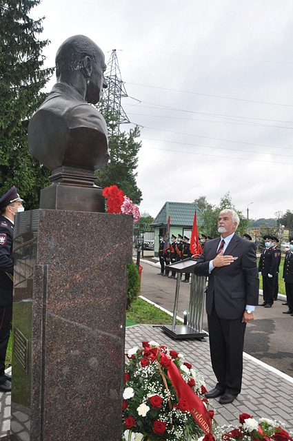 В своем выступлении председатель Президиума региональной общественной организации ветеранов УТ МВД России по ЦФО Геннадий Никифоров заметил, что в год 75-летия Великой Победы очень символично возвращение героя «домой» - «да, не живой, а в бронзе, дома…».