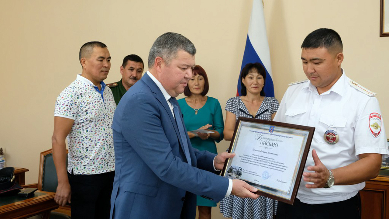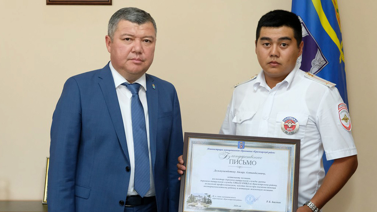 Мама юного астраханца поблагодарила полицейских за неравнодушие и профессионализм. Она также обратилась к главе администрации муниципального образования с просьбой поощрить сотрудников Госавтоинспекции, которые помогли спасти её ребёнка. Исполняющий обязанности главы района Руслан Бисенов вручил Кайрату Туралиеву и Айсару Дельмухамбетову благодарственные письма.