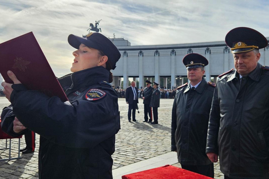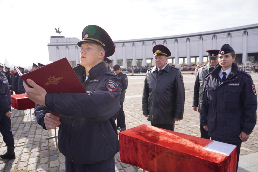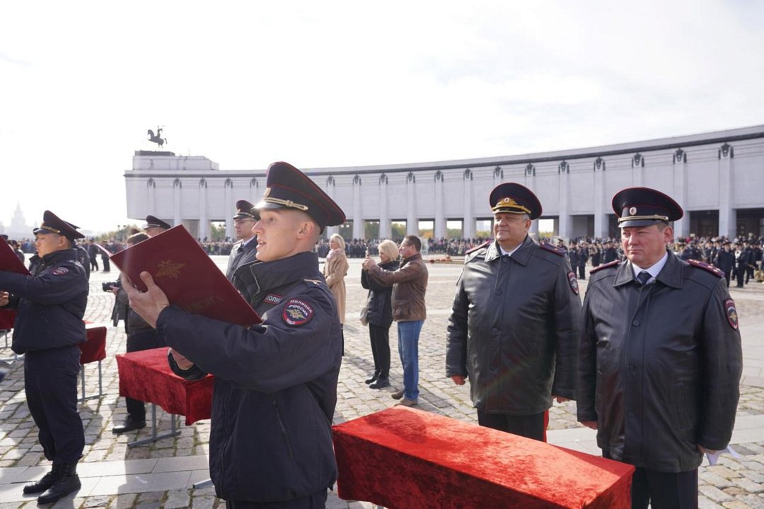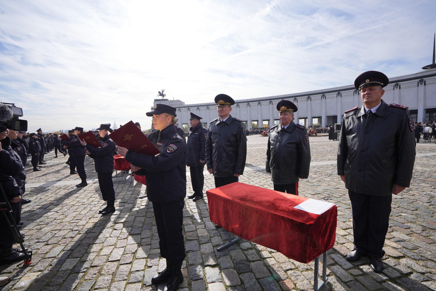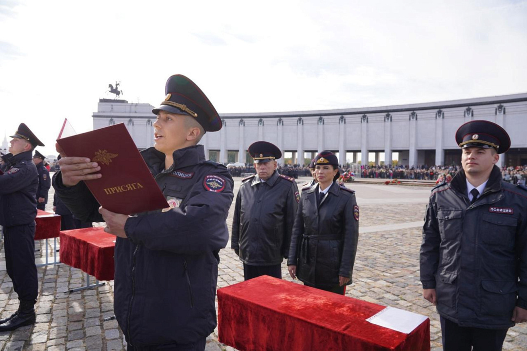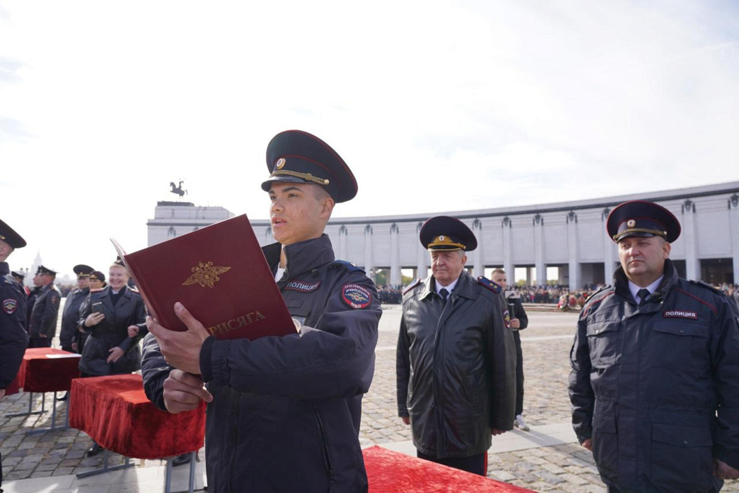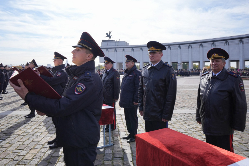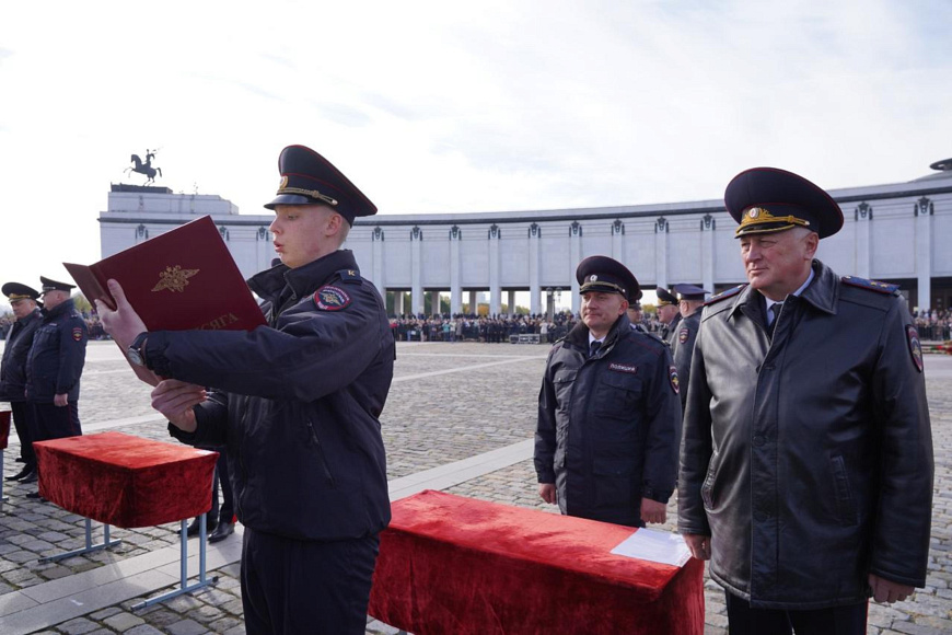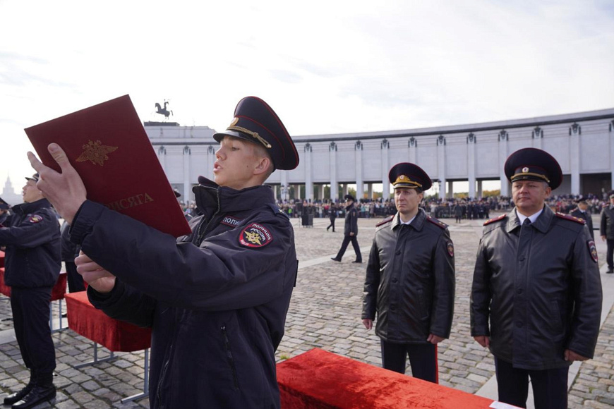 Сегодня на Площади Победителей у Музея Победы на Поклонной горе состоялась торжественная церемония приведения к Присяге сотрудника органов внутренних дел Российской Федерации курсантов первого курса Московского университета МВД России имени В.Я. Кикотя. В этот праздничный день более тысячи первокурсников, успешно выдержавших серьезный конкурсный отбор при поступлении на учебу, произнесли священную клятву в верности служения народу и Отечеству.