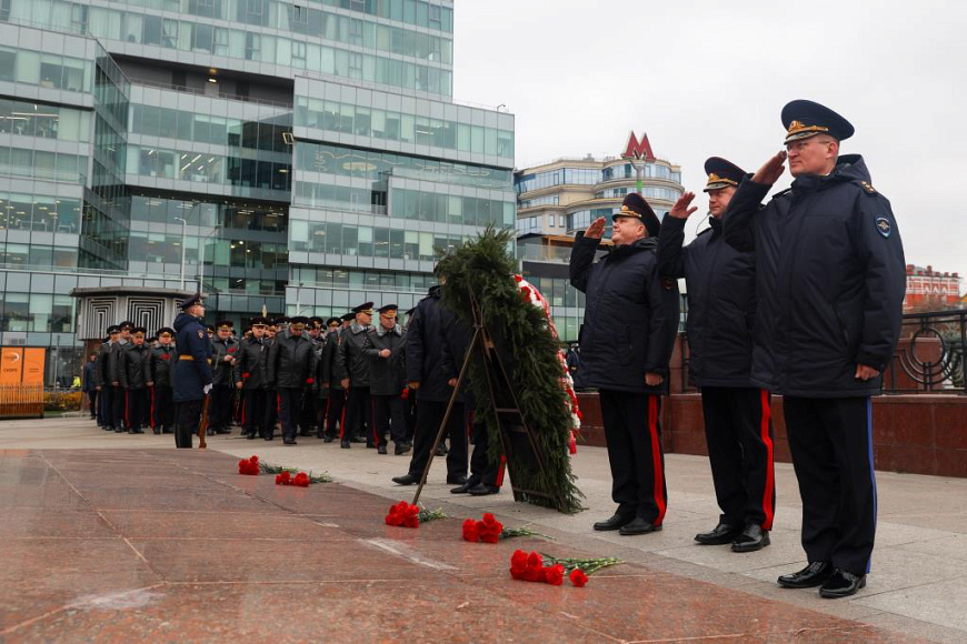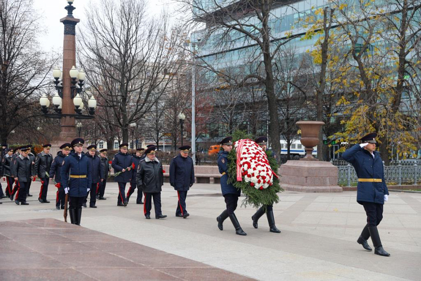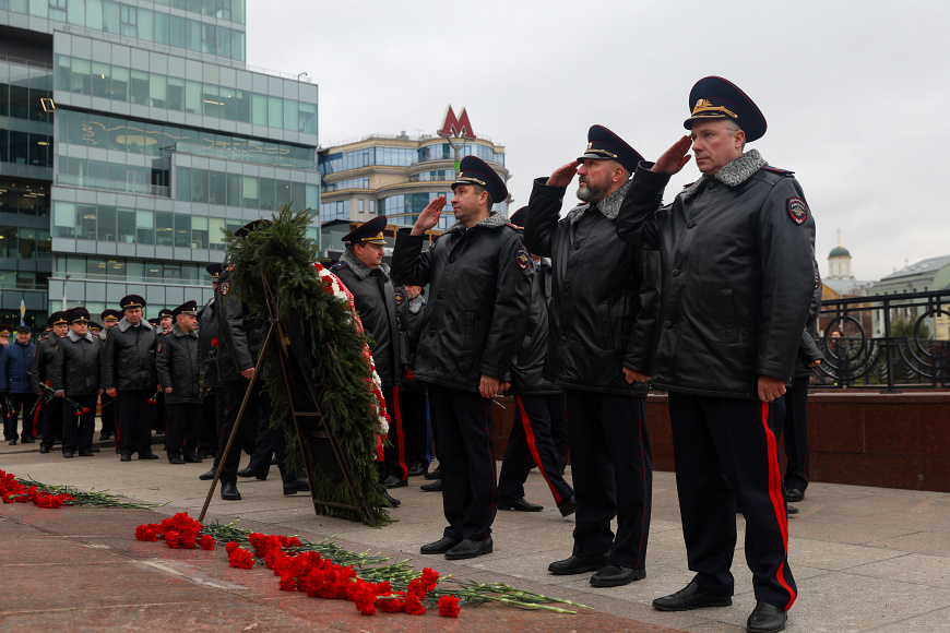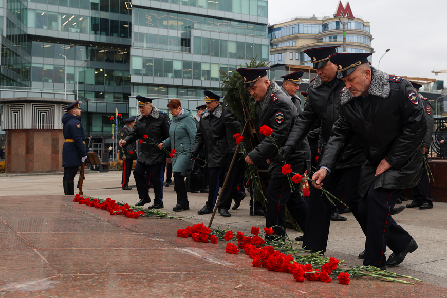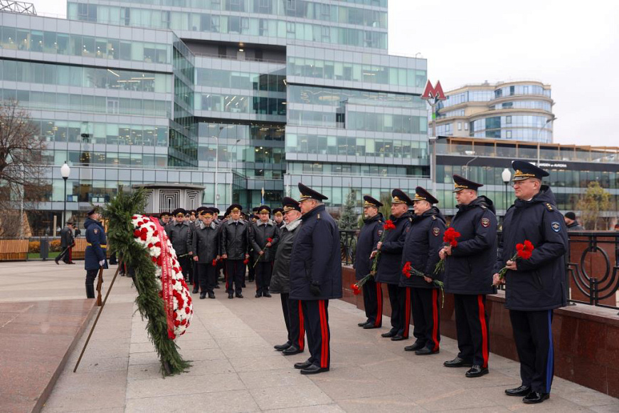 В Москве у памятника «Благодарная Россия – солдатам правопорядка, погибшим при исполнении служебного долга» делегация МВД России почтила память своих коллег