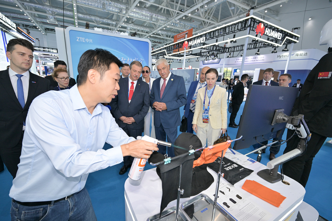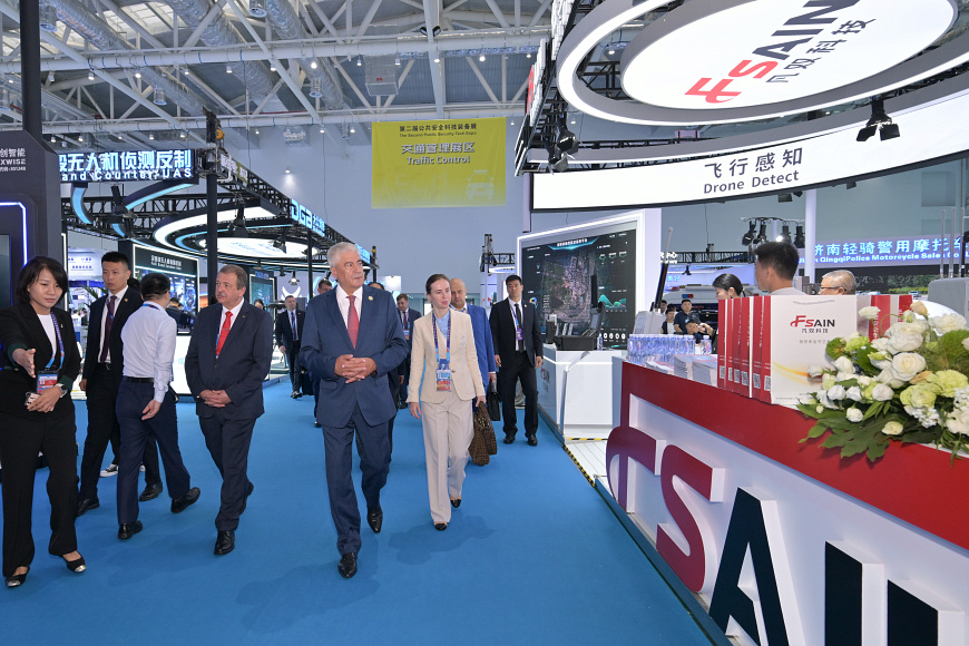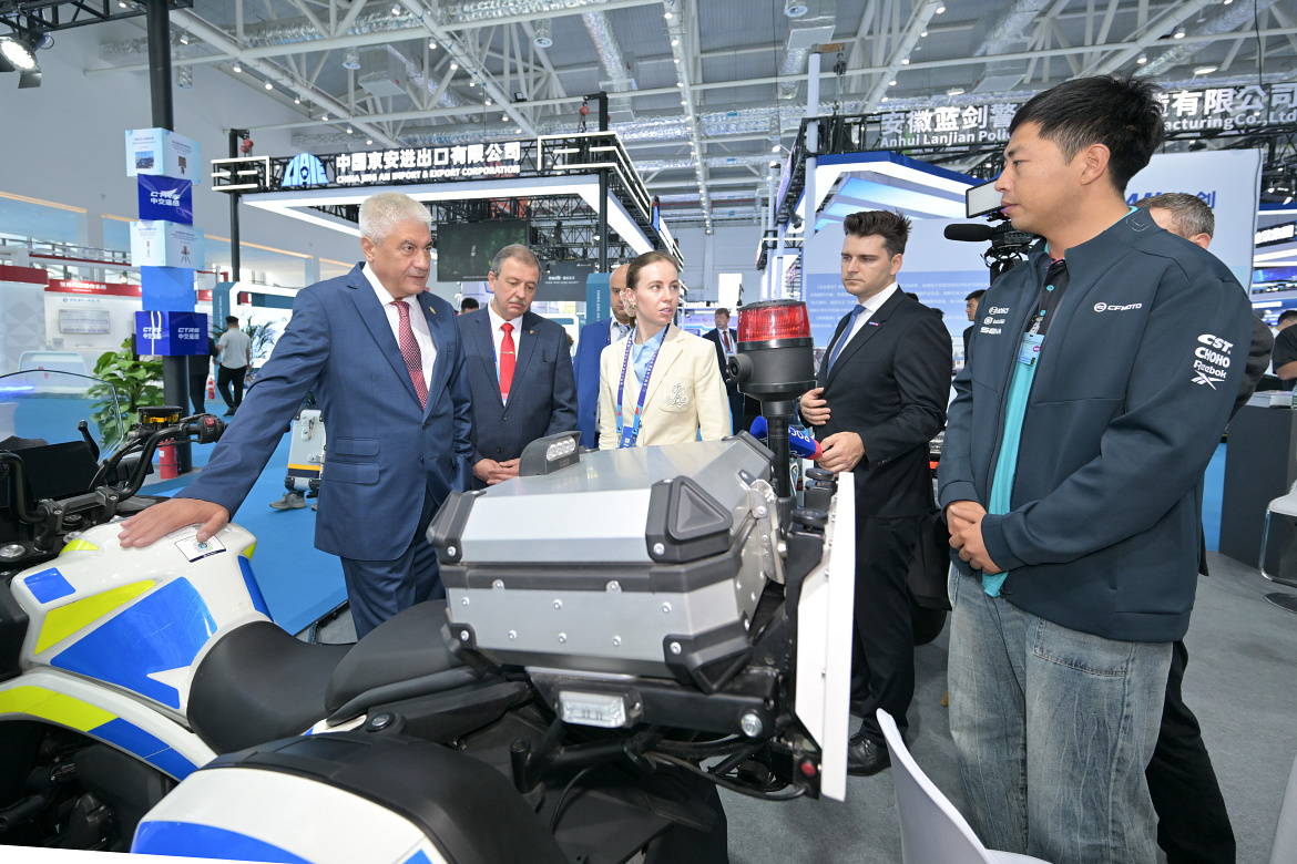 «Министр внутренних дел Российской Федерации генерал полиции Российской Федерации Владимир Колокольцев посетил выставку полицейского вооружения и специальной техники подразделений полиции специального назначения в китайском городе Ляньюньган.