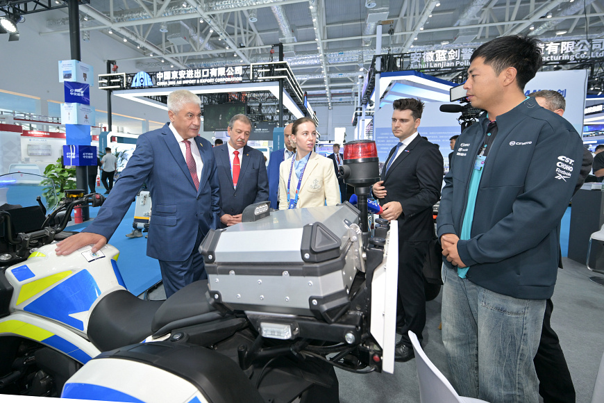 Владимир Колокольцев посетил выставку полицейского вооружения и специальной техники в городе Ляньюньган