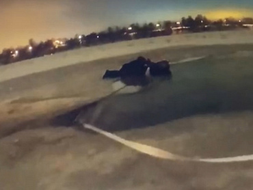 Сержант полиции Дмитрий Ходкевич, обвязав себя тросом, добрался до полыньи и сумел вытащить ребенка на лед.
