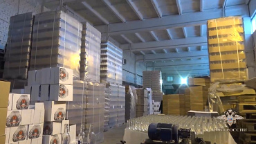 В ходе обыска в двухэтажном ангаре изъято около 20 тысяч бутылок немаркированной спиртосодержащей жидкости, а также оборудование.