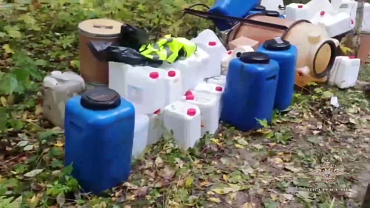 Сотрудники полиции установили в лесном массиве тайник злоумышленников. Там хранилось лабораторное оборудование и реагенты, а также несколько бочек и пакет с более чем 17 кг «синтетики».
