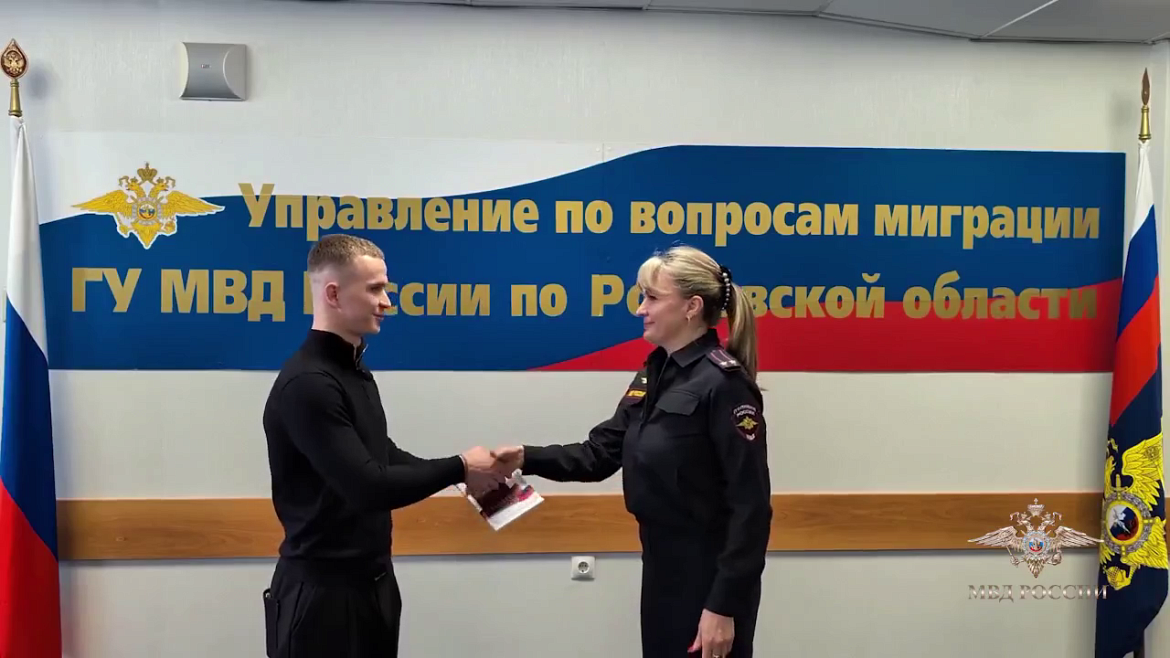 «Сотрудники Управления по вопросам миграции ГУ МВД России по Ростовской области вручили паспорт гражданина Российской Федерации 25-летнему Денису Константинову – участнику проекта RT «Не один на один».