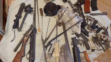 В его квартире обнаружены пистолеты, автоматы, пулеметы и винтовки различных марок, охотничьи ружья, 50 патронов и 218 предметов, внешне похожих на составные части оружия.