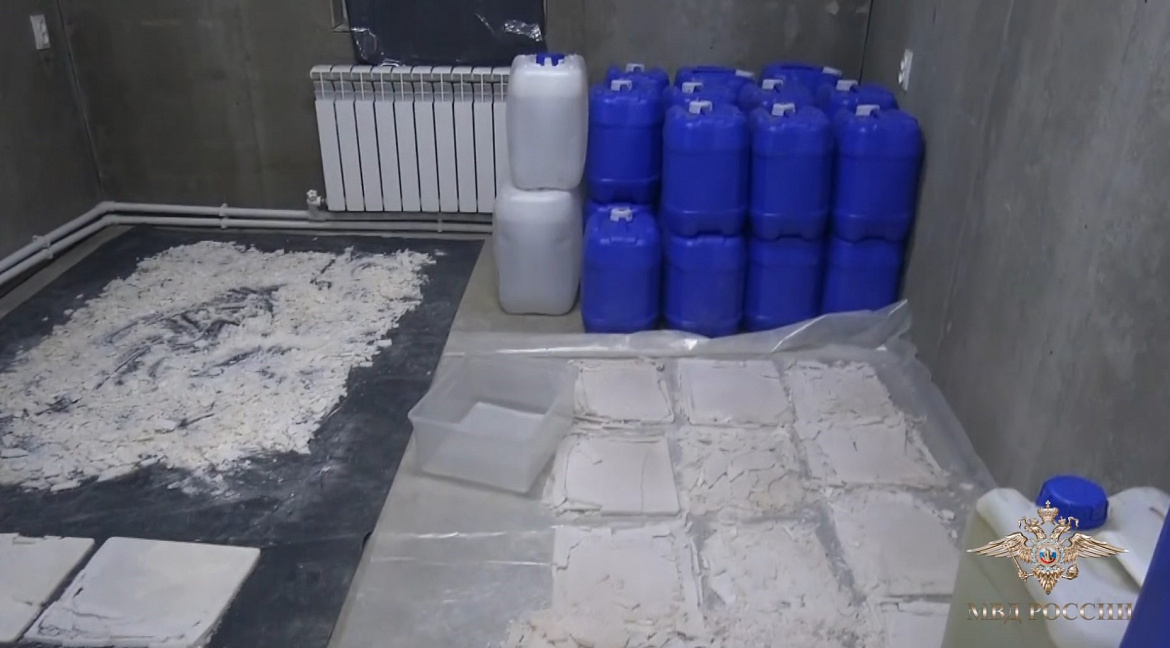 В ходе осмотра жилого дома и бани полицейскими обнаружено 192 килограмма готового к реализации наркотического средства мефедрон. Также изъято лабораторное оборудование, обеспечивающее весь цикл производства, более 1,5 тысячи килограммов химических веществ и 437 пластиковых канистр с наркосодержащей жидкостью.