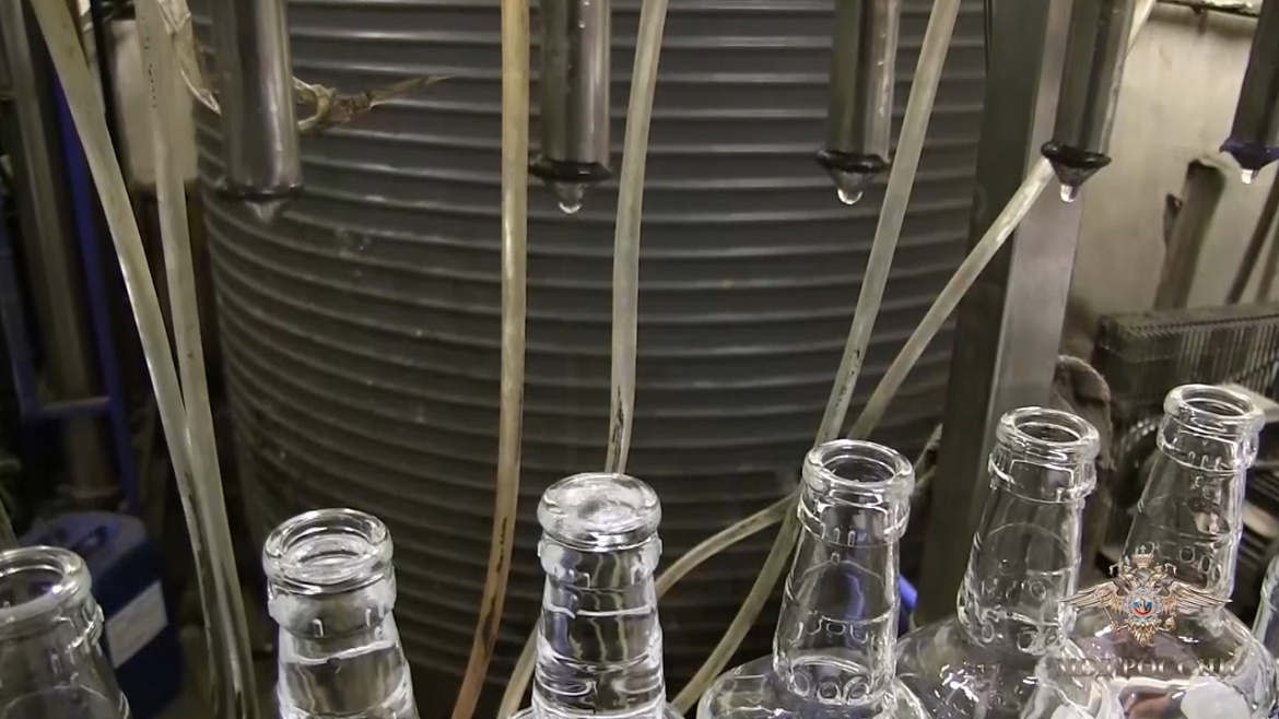 «В ходе дальнейших мероприятий полицейские выявили подпольный цех по производству, розливу и бутилированию спиртосодержащей продукции, а также склад, где хранился товар. Оперативники изъяли более 16 тысяч литров спирта и свыше 32 тысяч бутылок водки с этикетками известных торговых марок. Кроме того, обнаружено более 18 тысяч единиц пустой стеклянной тары.