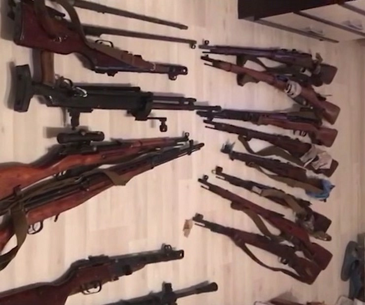 В этих помещениях сотрудниками полиции было обнаружено более пятидесяти предметов, конструктивно схожих с пулеметами, карабинами, винтовками Мосина, автоматами Калашникова, пистолетами-пулеметами Шпагина, пистолетами Макарова, Люгер и ТТ, револьверами системы Наган и гранатами. Также изъято более семи тысяч патронов различного калибра, основные части оружия и детонаторы.