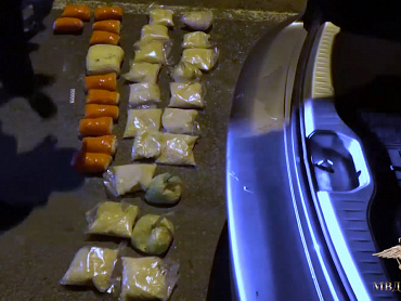 В автомобиле, на котором передвигались двое местных жителей, правоохранители обнаружили тайник и изъяли из него 56 стеклянных и жестяных банок с деликатесом весом 27 килограммов.