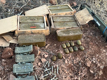 Обнаруженный арсенал, в котором были гранаты, мины и патроны, передан представителям Минобороны России.