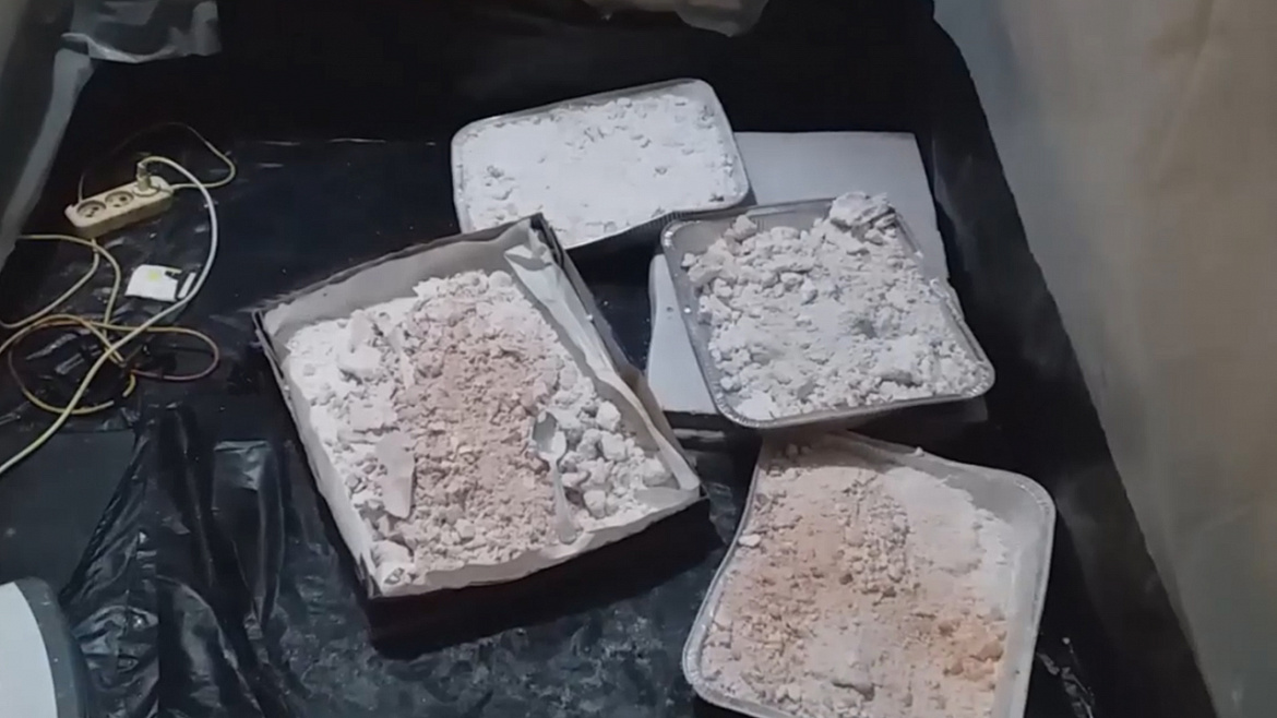 В результате дальнейших оперативно-розыскных мероприятий правоохранителями обнаружены и изъяты металлические ёмкости и чемодан с белым порошкообразным веществом общим весом около 10 килограммов, а также канистры с химическими реактивами и лабораторное оборудование. Изъятый порошок направлен на химическую экспертизу.
