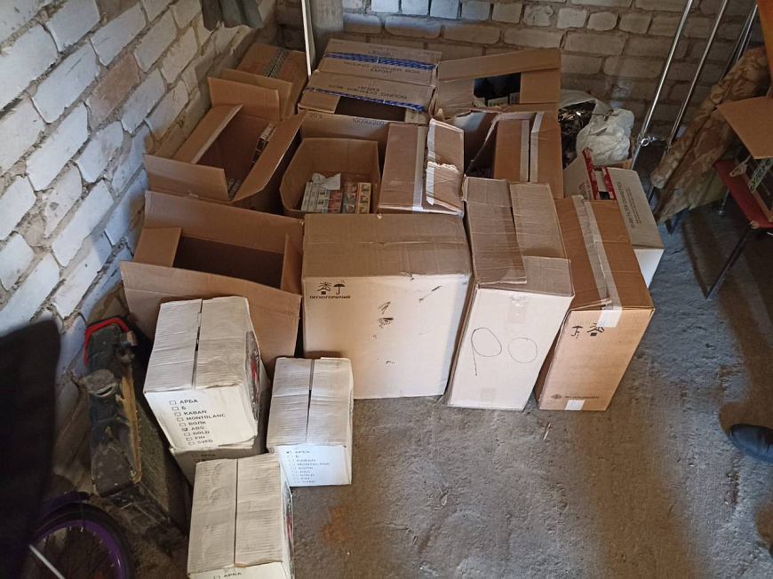 В ходе обыска принадлежащих злоумышленнику четырёх гаражей стражи правопорядка обнаружили свыше 7 тысяч пачек сигарет общей стоимостью порядка миллиона рублей, а также более 2 тысяч бутылок водки с этикетками известных брендов на сумму 230 тысяч рублей. На всей найденной продукции отсутствовала обязательная маркировка.